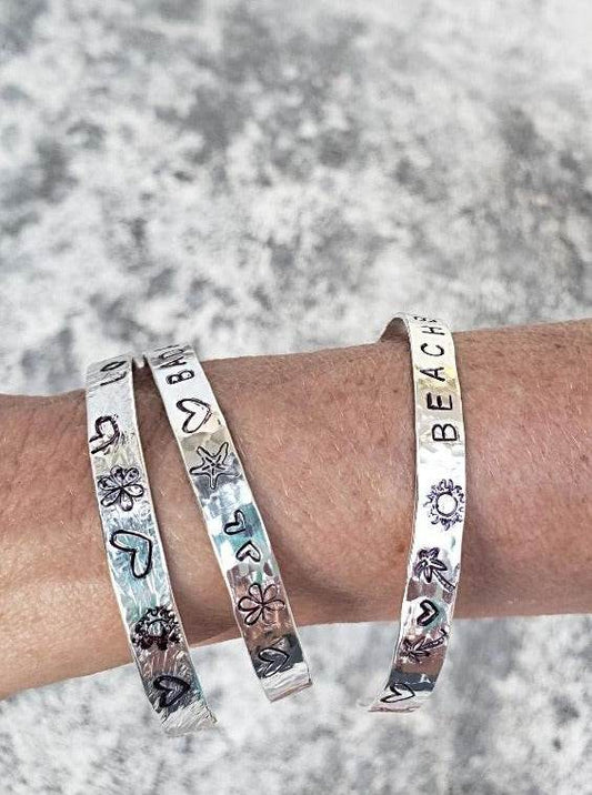 Handmade Sterling Silver Stamped Bracelet Cuff Hammered Design