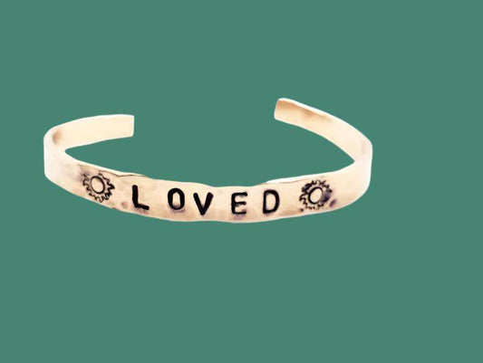 Copper Handmade Boho Bracelet Cuff Hammered And Stamped Words and Symbols