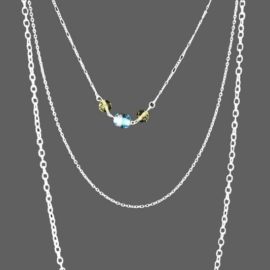 Handmade All Occasion Three-Layer Necklace with Oval Blue Bead and Olive-Colored Accents