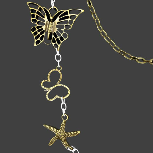 Handmade Boho Three-Layer Necklace with Vintage Starfish & Butterfly Charms – Whimsical Beach Vibes✨
