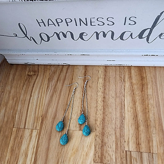 Handmade Sterling Silver Turquoise Howlite Teardrop Earrings | Figaro Chain Design | 4-Inch Length