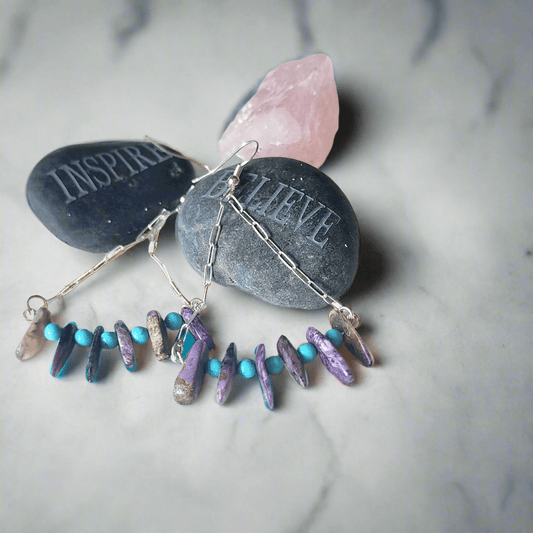 Handmade Sterling Silver Boho Earrings with Charoite & Turquoise Howlite Beads | Positive Energy Jewelry