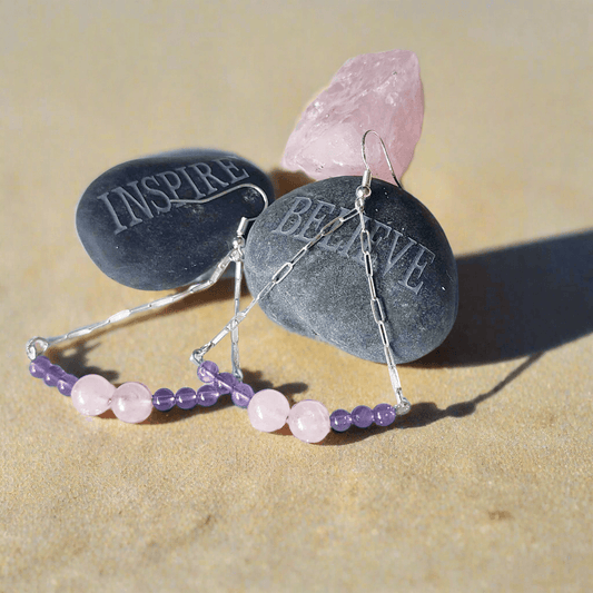 Handmade Sterling Silver Boho Earrings with Rose Quartz & Amethyst Beads | Love & Harmony Jewelry