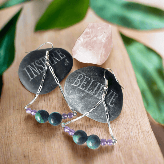 Handmade Sterling Silver Boho Earrings with Azurite Malachite & Amethyst Beads