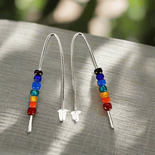 Handmade Sterling Silver 925 Chakra Earrings – Vibrant Color Glass Beads in French Hook Style✨