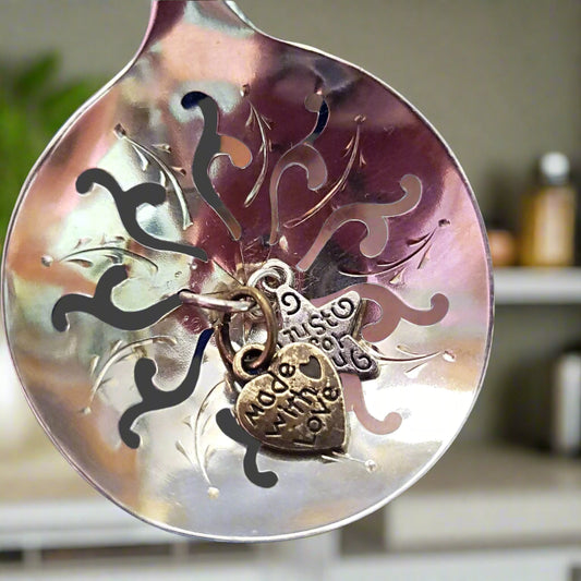 Vintage Sterling Silver Slotted Spoon Pendant with Heart Trinkets – 20" Adjustable Chain
