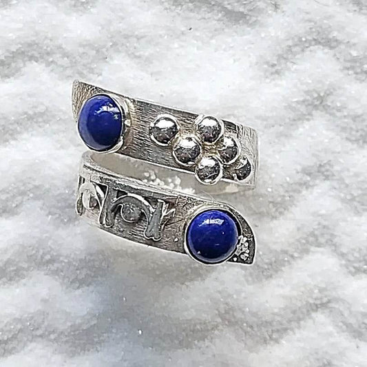 Handmade Sterling Silver Bypass Ring with Lapis Lazuli Cabochon | Boho Jewelry