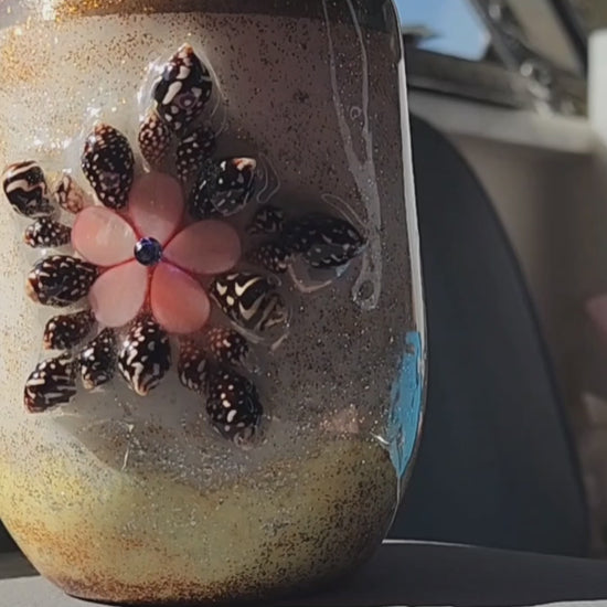 Handmade Seashell Flower Glitter Tumbler | 12oz Stainless Steel Beach Boho Souls