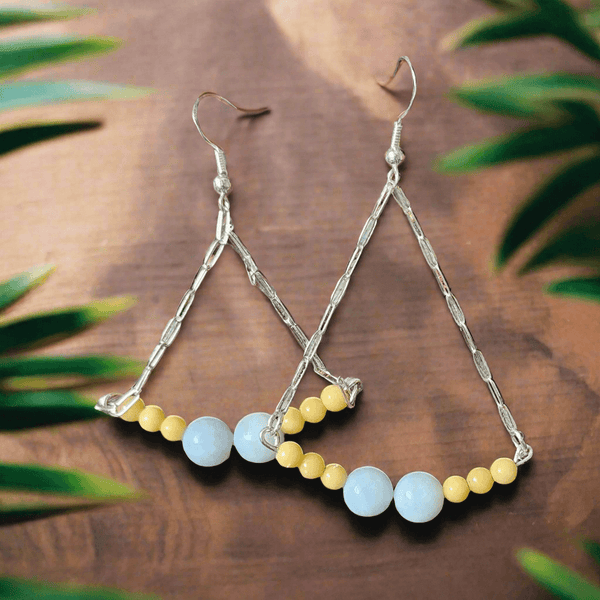 Aquamarine, known for its calming properties, promotes tranquility and clarity, while yellow jasper boosts confidence and optimism. Whether you're accessorizing for a casual outing or dressing up for a night out, these earrings will bring the perfect balance of beauty and energy to your look.
