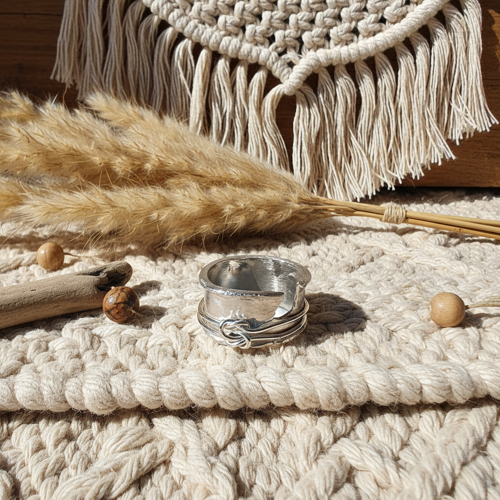 Handmade .925 Sterling Silver Spinner Ring – Double Love Knot Design, Bold & Unforgettable