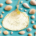 Handmade Super Sweet Giant Cockle Shell Pendant – Gold/Silver Wire Twirl, Glitter Embellished✨-Beach Boho