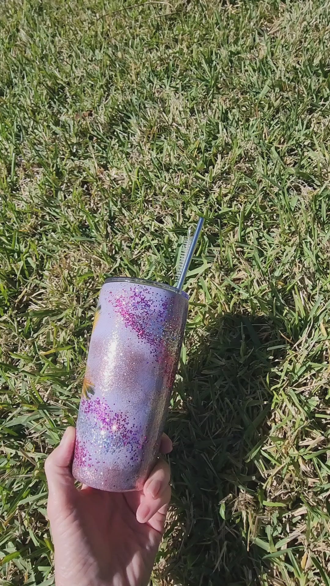 I made this tumbler after one of those slow beach walks where you’re not looking for anything - just letting the tide decide what shows up. This one-of-a-kind lavender coastal tumbler is layered with silver, rose gold, and purple glitter, giving it a soft, sun-washed glow that shifts with the light. Real seashells and natural feathers are sealed in by hand.